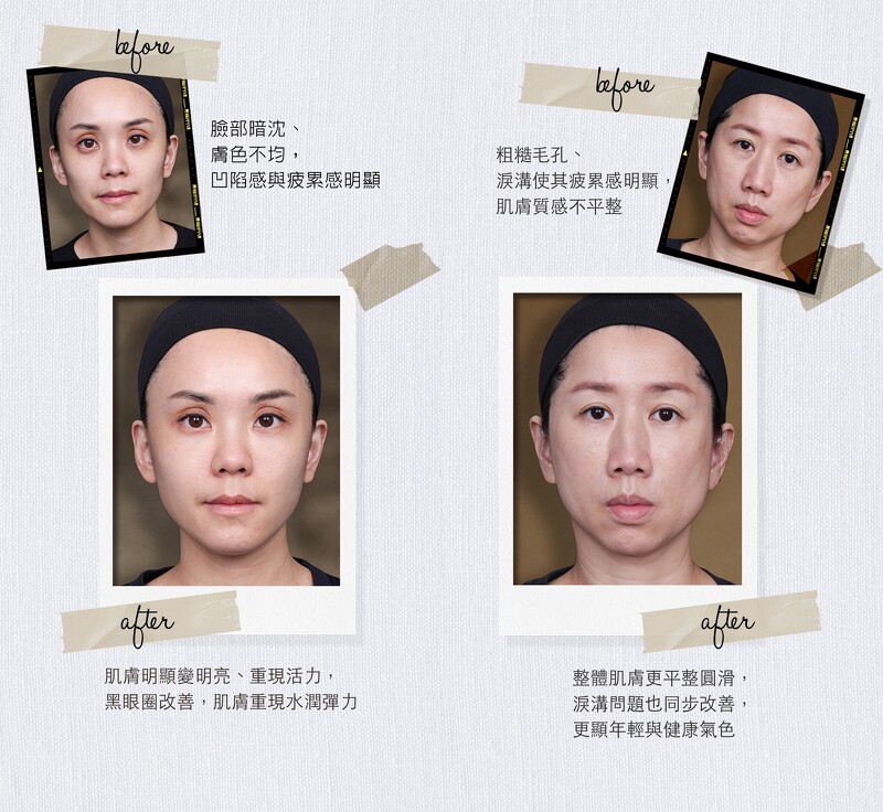免责声明:肌肤保养品使用后状况会依个人使用方法及肌肤状况而有所不同,并请配合正确使用方法。